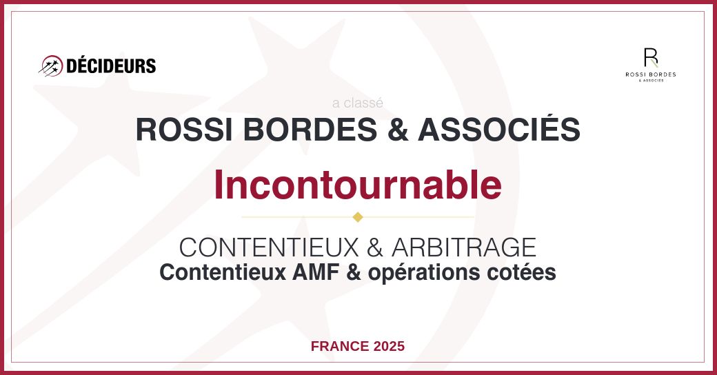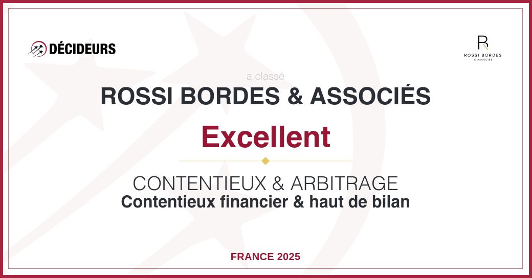 ROSSI BORDES & ASSOCIES est régulièrement cité comme un cabinet de premier plan dans ces domaines de compétence.