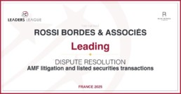 ROSSI BORDES & ASSOCIES has also developed specific expertise in disputes involving regulated professions – such as statutory auditors and accounting firms – and in stock market litigation. As such, the firm is regularly involved in proceedings carried out by the French financial markets’ regulator (Autorité des marchés financiers « AMF”), both during investigation (investigations or audits) and sanction phases.