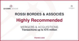 Founded in 2012, ROSSI BORDES & ASSOCIES is a French leading independent law firm with a significant expertise in corporate transactions and litigation matters in a wide range of practice areas.