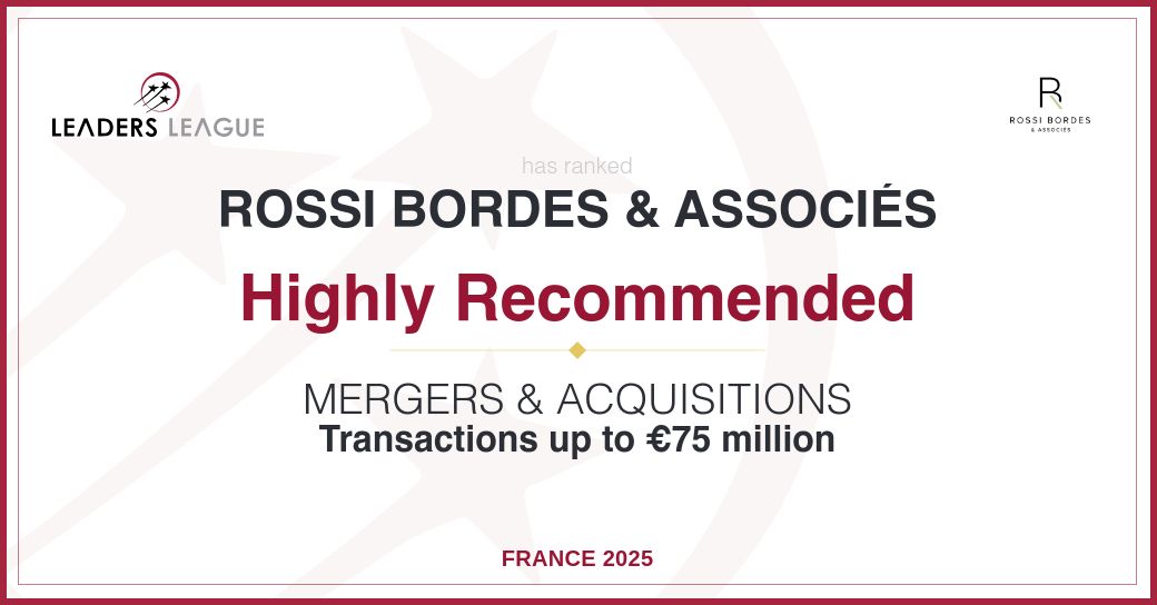 Founded in 2012, ROSSI BORDES & ASSOCIES is a French leading independent law firm with a significant expertise in corporate transactions and litigation matters in a wide range of practice areas.